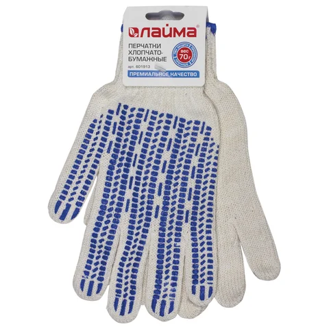 Перчатки трикотажные Laima Премиум 1 пара, белые, 233 текс, с ПВХ, 7.5 класс
