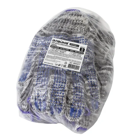 Перчатки трикотажные Laima Профи 5 пар, серые, с ПВХ, 10 класс