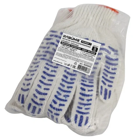Перчатки трикотажные Laima Волна 5 пар 7,5 класс, с ПВХ