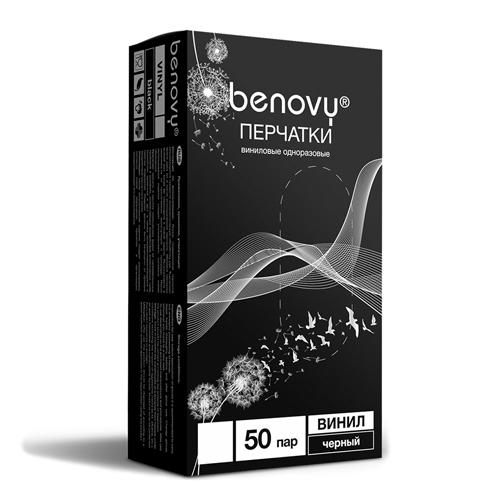 Перчатки виниловые Benovy Vinyl р.L, черные, 50 пар