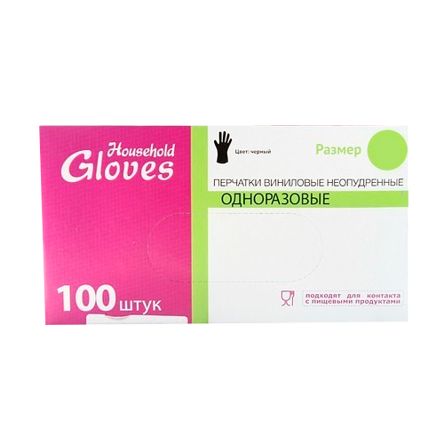 Перчатки виниловые Household Gloves, р.XL, 4г, прозрачные, 50 пар