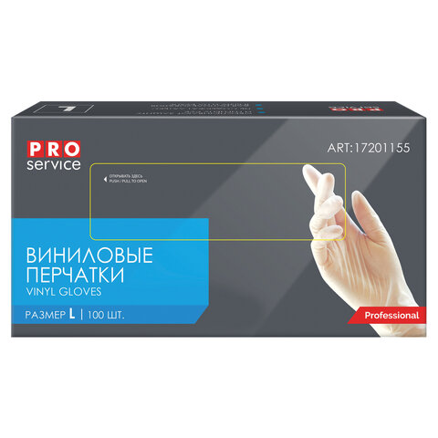 Перчатки виниловые КОМПЛЕКТ 50 пар (100 шт.) неопудренные, размер L (большой), PRO Service Professio