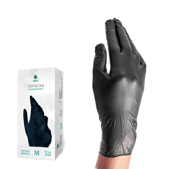 Перчатки виниловые Saf&ty Vinyl р.L, черные, 50 пар