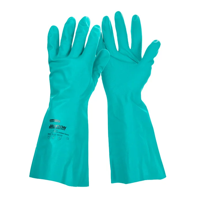 Защита от воздействия химических веществ, индивидуальный дизайн для левой и правой руки, специальный рельеф наконечников пальцев обеспечивает отличный захват в сухом и влажном состоянии; флокированный внутренний слой, не содержащих латекс перчаток, облегчает надевание и повышает комфорт при длительном ношении.