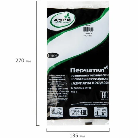 Перчатки защитные Азри технические р. L, кислотощелочестойкие КЩС Тип-2
