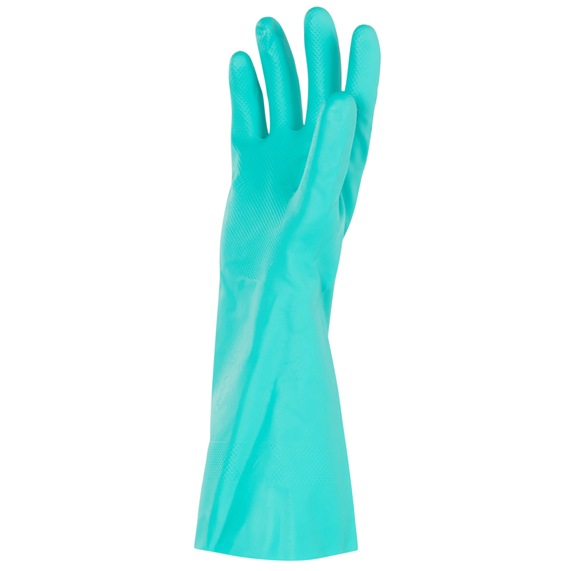 С длинной манжетой и рельефным покрытием на пальцах. Защита рук от химического воздействия масел, смазки, кислот, едких веществ и растворителей. Основные преимущества: уникальная формула Nitrile обеспечивает превосходную защиту от химикатов и долговечность, не содержат натурального латекса, что снижает аллергических реакции Типа 1, специальное напыление, облегчающая надевание и повышает комфорт использования, рельефная поверхность ладони и кончиков пальцев обеспечивают отличный захват во влажной и сухой среде, устойчивы к многочисленным распространенным химикатам, включая масла и растворители, высокая износостойкость и отличная устойчивость к проколам, без ущерба для движений (уровень AQL 0.65 для микропроколов), эргономичный дизайн обеспечивает максимальный комфорт и минимизирует усталость рук