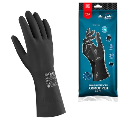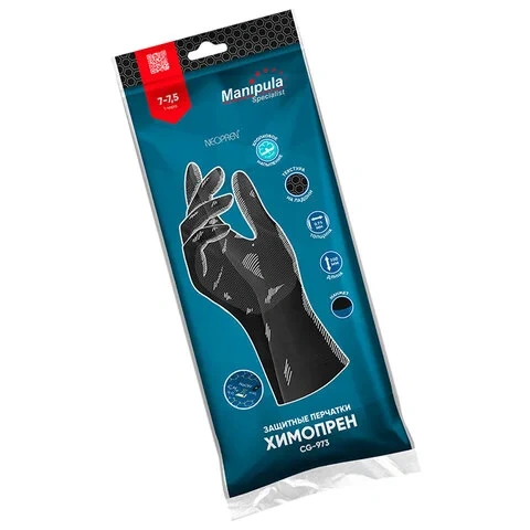 Перчатки ХИМОПРЕН (химическая стойкость к широкому спектру агрессивных жидкостей и эластичность до -20 °С) предназначены для защиты рук от кислот и щелочей. Дополнительная стойкость к сложным эфирам (этилацетат) и насыщенным углеводородам (Н-гептан).