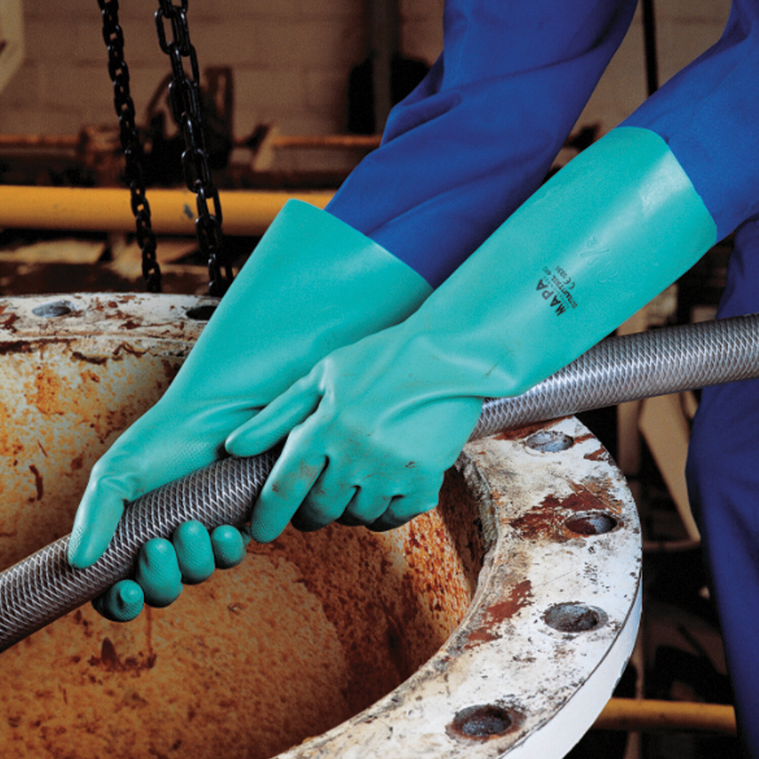 Отличная защита при интенсивной работе с химическими веществами, представляющими повышенную опасность. Надежное удержание скользких предметов благодаря рельефной текстуре.