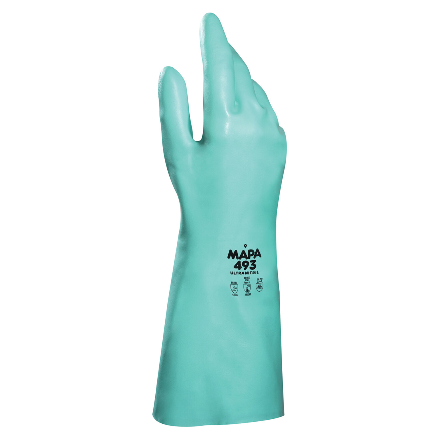 Перчатки защитные Mapa Ultranitril 493 р.S, зеленые, нитрил, хлопчатобумажное напыление