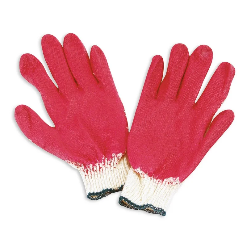 Перчатки рабочие защитные трикотажные с латексным покрытием белые/красные (универсальный размер, 10 пар в упаковке). Безразмерные защитные перчатки выполнены из плотной и прочной хлопчатобумажной ткани. Латексная заливка на стороне ладони предотвращает механические повреждения и повышает износоустойчивость.