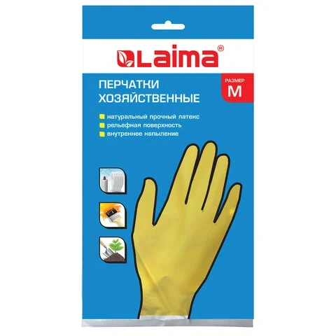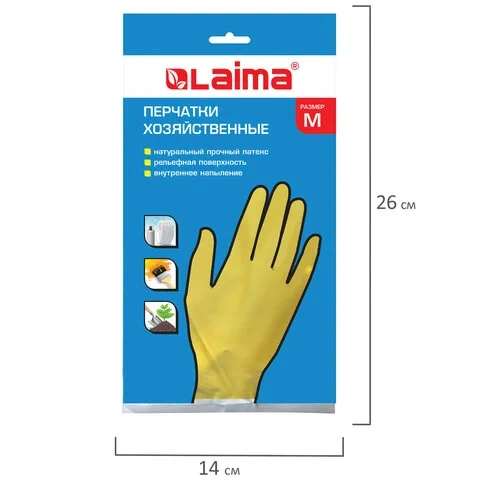 Перчатки хоз.латексные ЛАЙМА 'Стандарт', с х/б напылением, размер М (средний), 600353