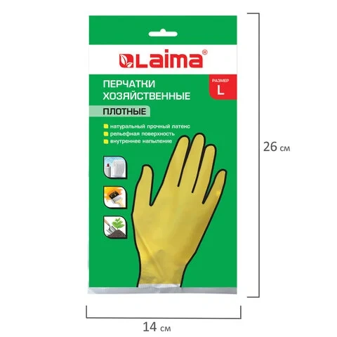 Перчатки хоз.латексные ЛАЙМА 'Премиум', внутр.напыл. хлопок 100%, суперплот, размерL(большой),600272