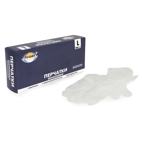 Перчатки виниловые Aviora р.L, прозрачные, 50 пар