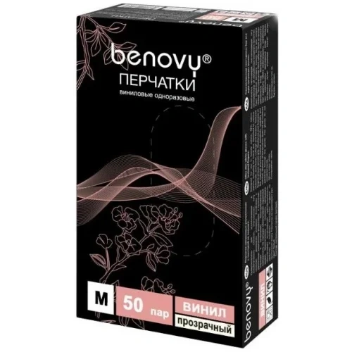 Перчатки виниловые Benovy р.M, прозрачные, 50 пар НДС20% (без ЧЗ)