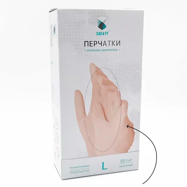 Перчатки виниловые Saf&ty р.L, прозрачные, 50 пар