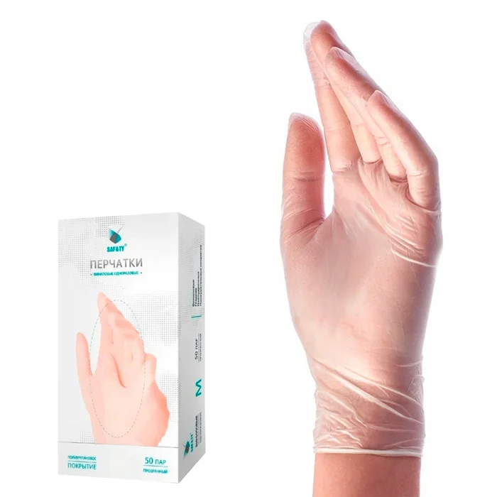 Перчатки виниловые Saf&ty р.M, прозрачные, 50 пар