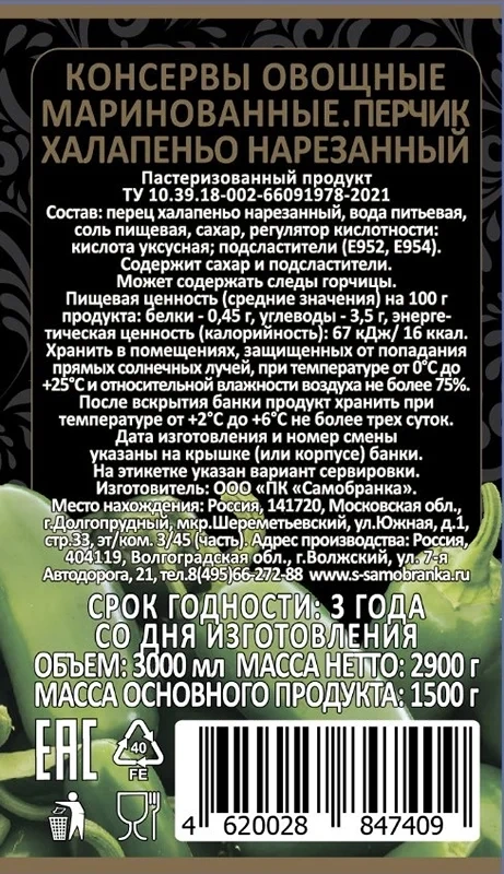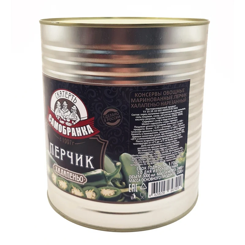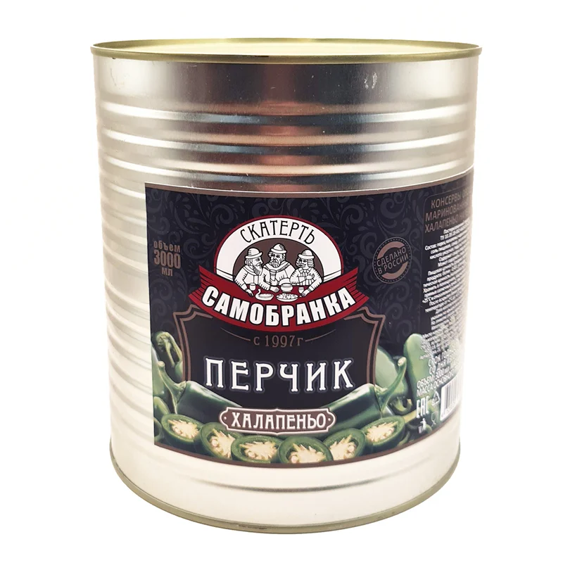 Перчик халапеньо Скатерть-Самобранка зеленый нарезанный, 3л