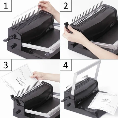 - максимальная толщина переплета: до 450 листов при использовании 51-мм пружины;