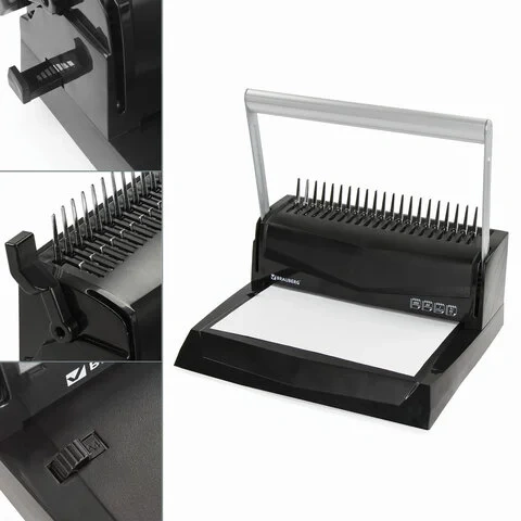 Переплетная машина для пластиковой пружины BRAUBERG 530960 идеально подходит для дома и офиса, где часто возникает потребность в переплете документов. С ее помощью можно перфорировать 20 листов плотностью 80 г/м2 и подшивать 450 листов формата А4, А5 и А3 (в альбомной ориентации).