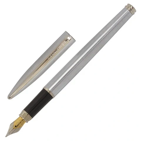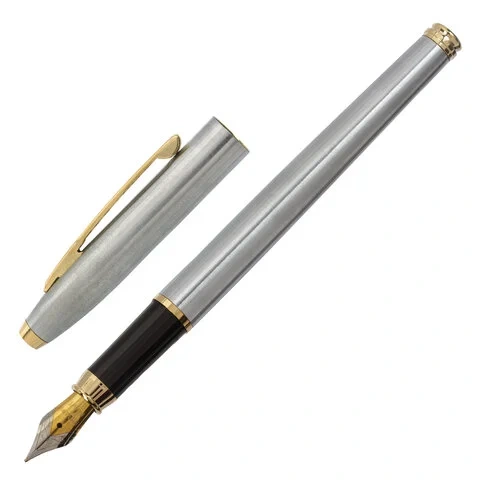 Перьевая ручка Brauberg Maestro синяя, 0.25мм, корпус серебристый-золотой