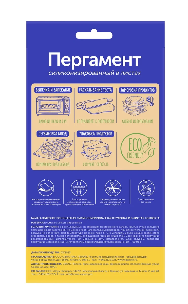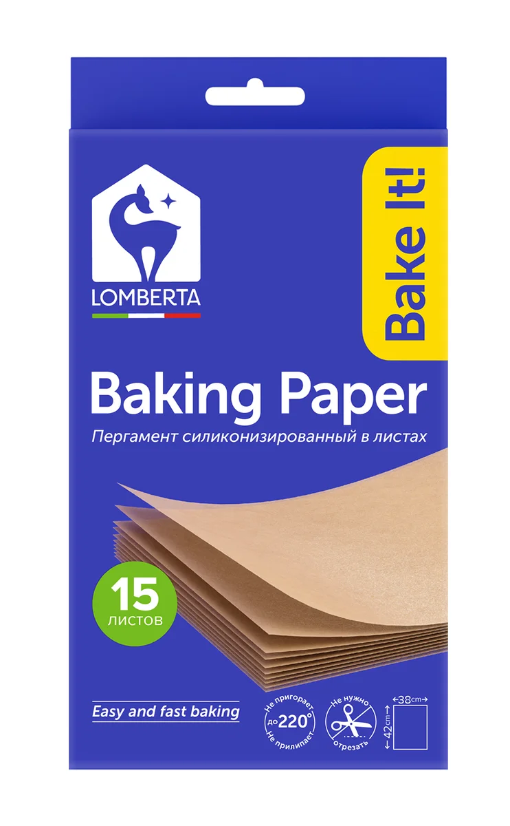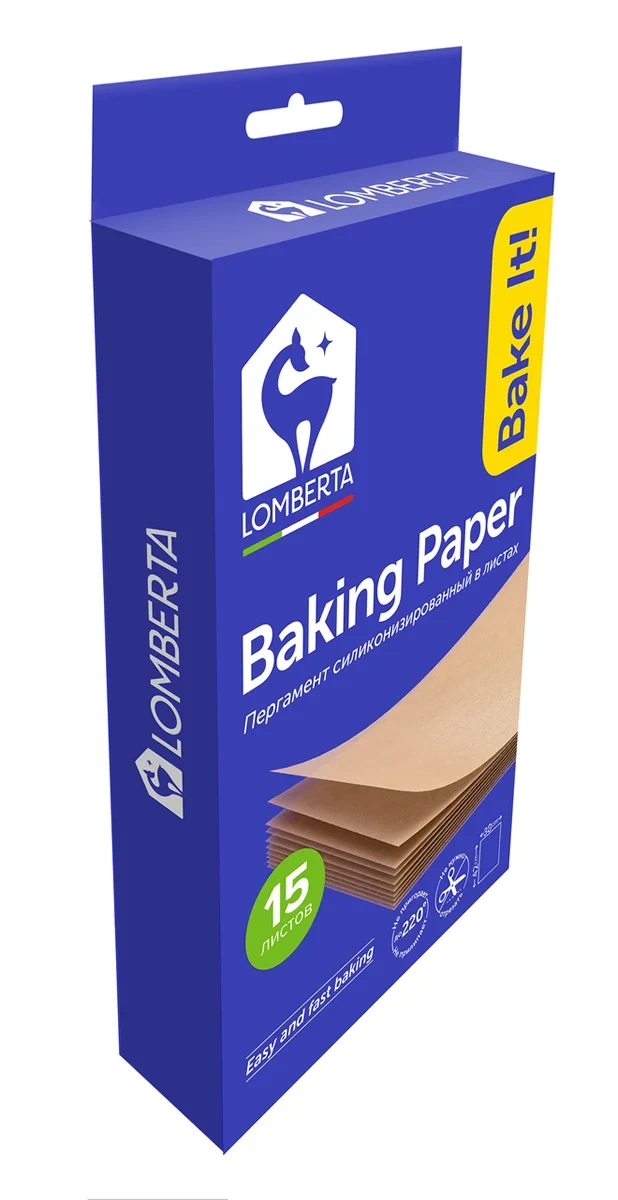 Пергамент для выпечки Lomberta в листах, 15 шт. предназначен для выпечки в духовках электрических и газовых плит, СВЧ-печей. Изделие имеет качественное двустороннее силиконовое покрытие и не нуждается в смазке. Оно исключает прилипание и пригорание пищи. Бумага для выпечки Lomberta выдерживает высокие температуры до 220 С, не пропускает жир и воду. Более того пергамент можно использоваться повторно – после приготовления выпечки он не теряет своих первоначальных характеристик. Это отличный вариант для духовых шкафов и микроволновых печей, для домашнего использования, а также для кафе и ресторанов. Пергамент не занимает много места при хранении. Он поставляется в виде листов, поэтому его удобно держать в ящике стола.