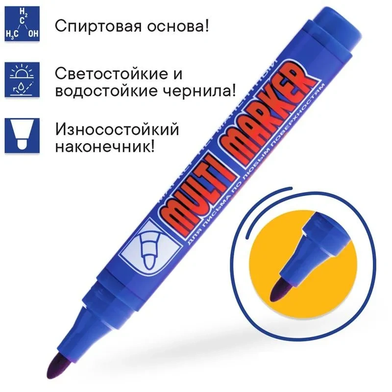 Маркер перманентный MunHwa синий, пулевидный, 1,5мм