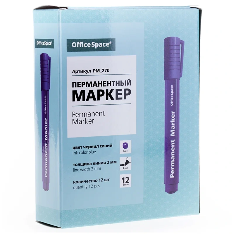 Маркер перманентный Officespace 8004 синий, 2мм, пулевидный наконечник