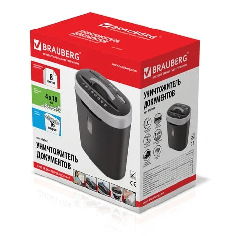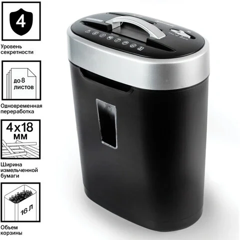 Персональный шредер Brauberg S8, 8 листов, 16 литров, 4 уровень секретности
