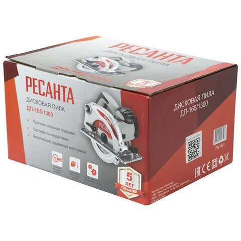 Пила циркулярная Ресанта 75/11/1 1300Вт, 5500 оборотов/мин, диск 165 мм х 20 мм
