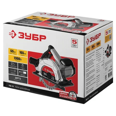 Пила циркулярная Зубр ПД-55 1300Вт, 4700 оборотов/мин, диск 190 мм х 20 мм