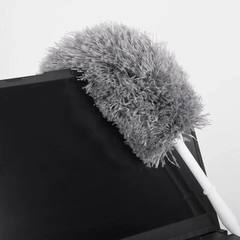 Метелка изготовлена из мягкого пушистого волокна 80 мкм – она притягивает пыль любых размеров, на нее можно намотать паутину, почистить любое место в квартире.