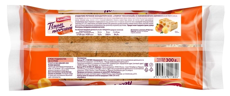 Пирог Хлебный дом песочный абрикос и персик, 300г