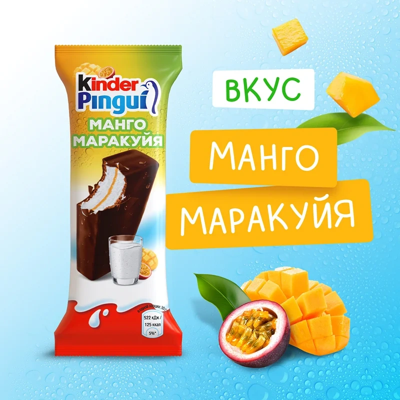 Kinder Pingui Манго Маракуйя - это сочный бисквит с хрустящим шоколадом и молочной начинкой с прослойкой Манго-Маракуйя.Kinder Pingui прекрасно подойдет для легкого перекуса в течение дня. Как и все молочные продукты, хранить Kinder Pingui нужно только в холодильнике. Не содержит красителей и консервантов. Порадуйте себя и своих детей вкусным перерывом с Kinder Pingui. Не содержит красителей и консервантов.