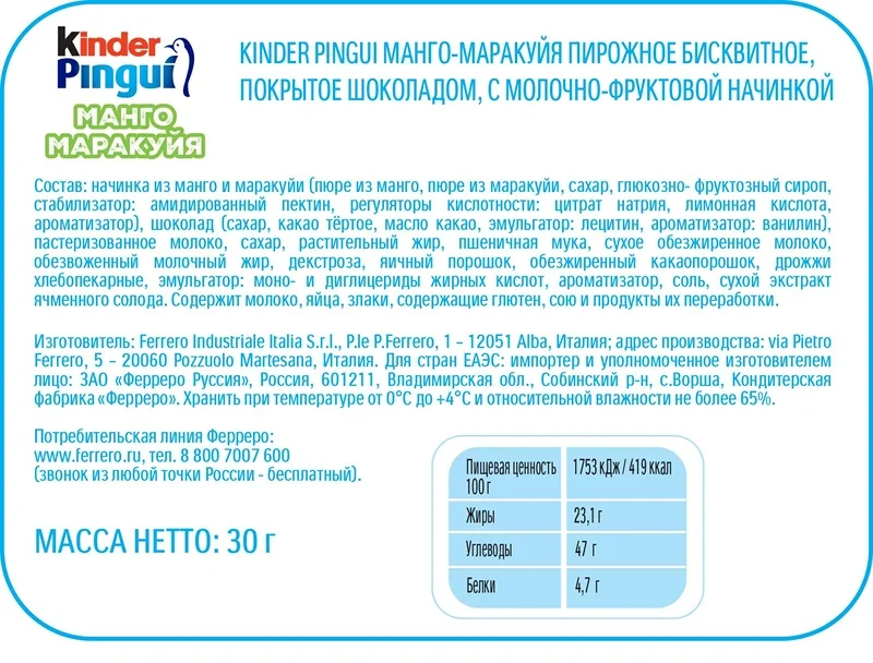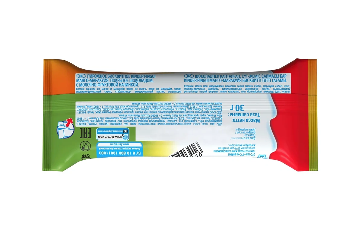 Пирожное Kinder Pingui бисквитное манго-маракуйя, 30г