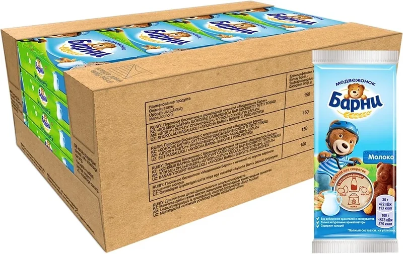 Пирожное Медвежонок Барни бисквитное с молочной начинкой, 150г x 20 шт