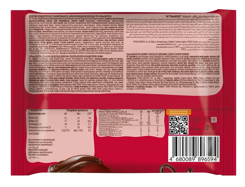 Протеиновый комплекс (концентрат молочного белка, белок яичный, концентрат сывороточного белка), начинка кондитерская без добавления сахара (подсластитель мальтит, масло ши рафинированное фракционированное, сухое обезжиренное молоко, сухая сыворотка молочная, эмульгатор лецитин соевый, ароматизатор), загуститель полидекстроза, подсластители: мальтит, стевиол гликозиды, растительное масло (эмульгаторы: сорбитан тристеарат, лецитин соевый, антиокислитель - концентрат токоферолов), масло кокосовое, питьевая вода, изомальтоолигосахариды (пребиотик), пшеничная мука, яичный желток, сухое обезжиренное молоко, миндальная мука, глицерин (влагоудерживающий агент), подсолнечное масло высокоолеиновое, какао-порошок, сублимированный кофе, соль, лецитин соевый, разрыхлители: гидрокарбонат натрия (сода), пирофосфат натрия, консервант сорбат калия, натуральный ароматизатор.