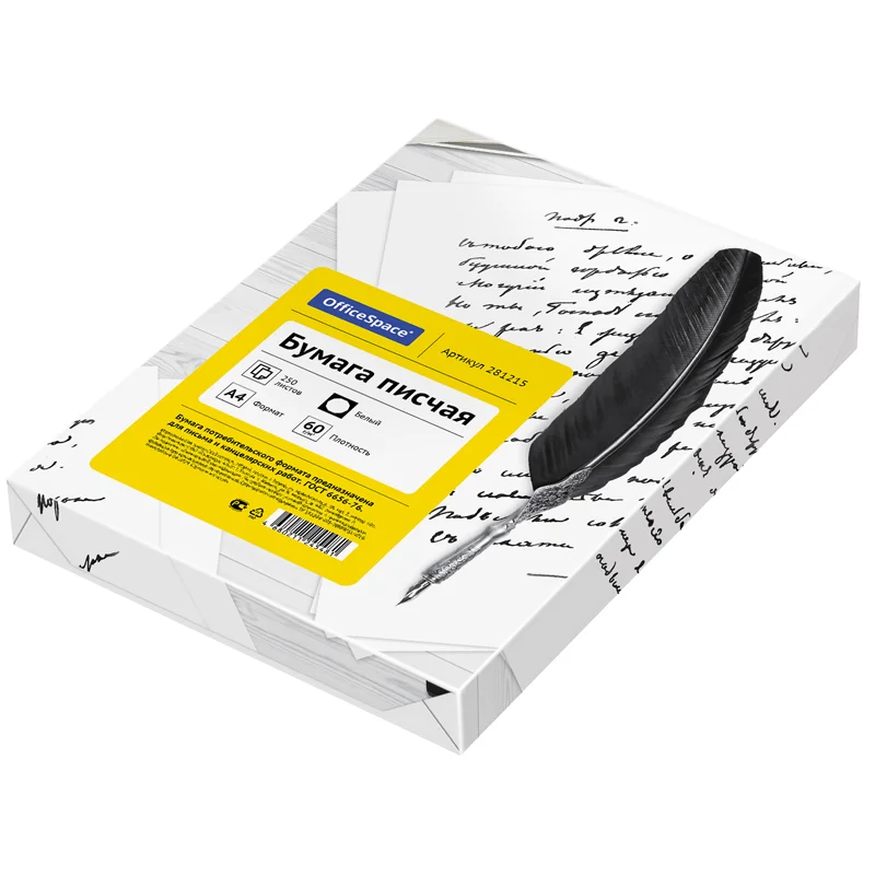 Писчая бумага Officespace А4, 250 листов, 60г/м2, белизна 92%