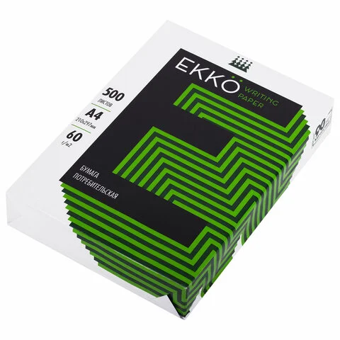 Бумага А4, 60 г/м2, белизна 60%, 500 листов, Россия, ЕККО, 114320