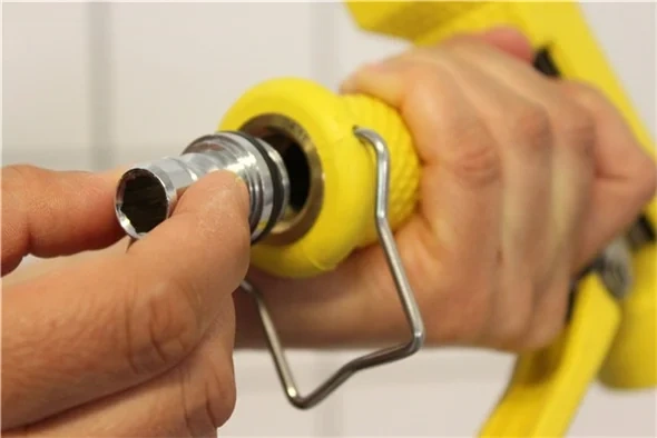 Усиленный водный пистолет, для мойки полов и оборудования. Нажатием на изолированный резиной курок, регулируется струя воды, позволяя выполнять различные задачи, в т. ч. ополаскивание.
