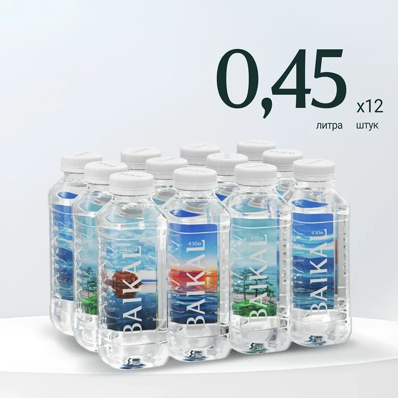 BAIKAL430 представлена в различных форматах упаковки: от стильных бутылок, которые удобно брать с собой, до больших форматов, подходящих для домашнего использования и офиса.