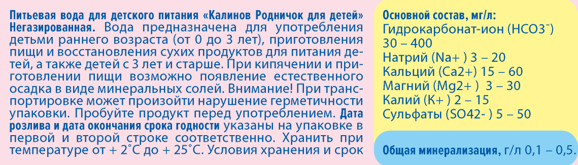 Вода детская Калинов Родничок питьевая с рождения, 2л