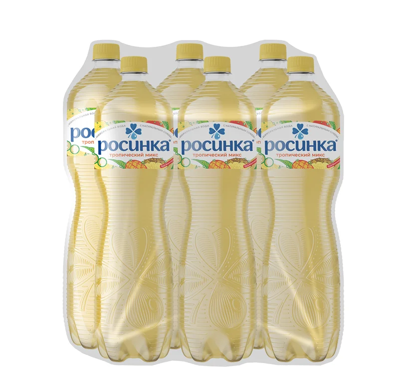 Вода Росинка с соком тропических фруктов питьевая газированная, 1.5л x 6 шт