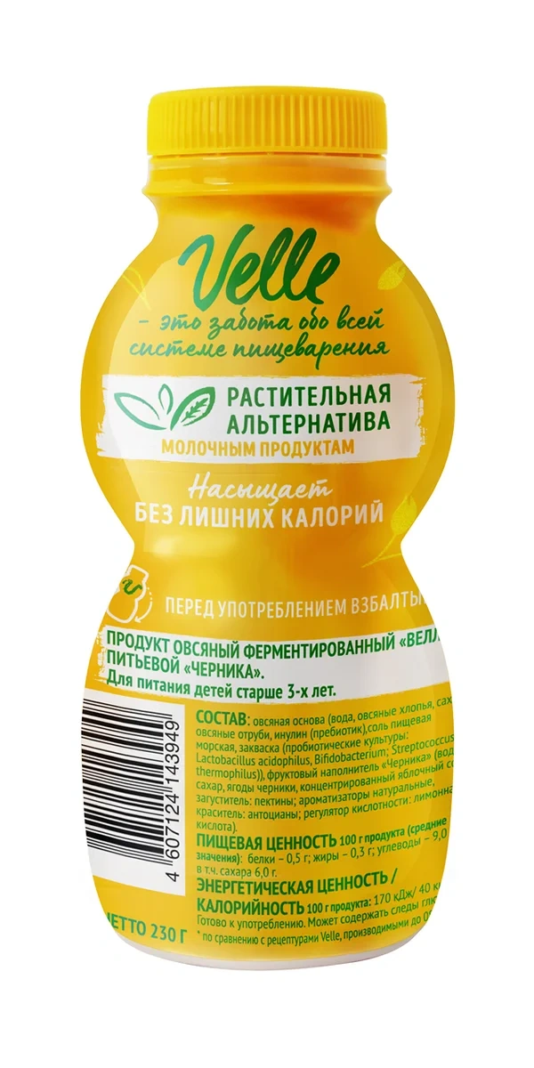 Питьевой растительный йогурт Velle овсяный черника, 230г — лучшее решение для легкого перекуса в любое время суток. Продукт производят на высокотехнологичном предприятии с применением современных технологий. Он благоприятно влияет на иммунную систему в целом: укрепляет функции желудочно-кишечного тракта, улучшает микрофлору кишечника, поддерживает мышечную и костную системы. Йогурт изготовлен из растительных продуктов. Он характеризуется приятным вкусом и мягкой консистенцией. Диетический продукт рекомендуется употреблять всем, кто борется с лишним весом, ведь он не создает в желудке ощущений тяжести и усталости, но утоляет голод.