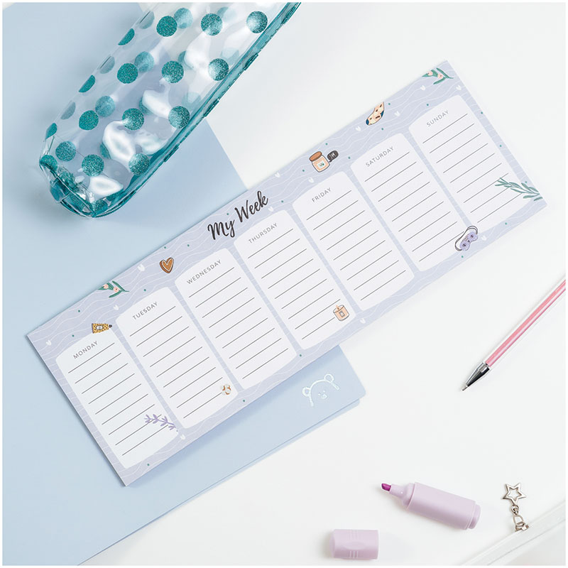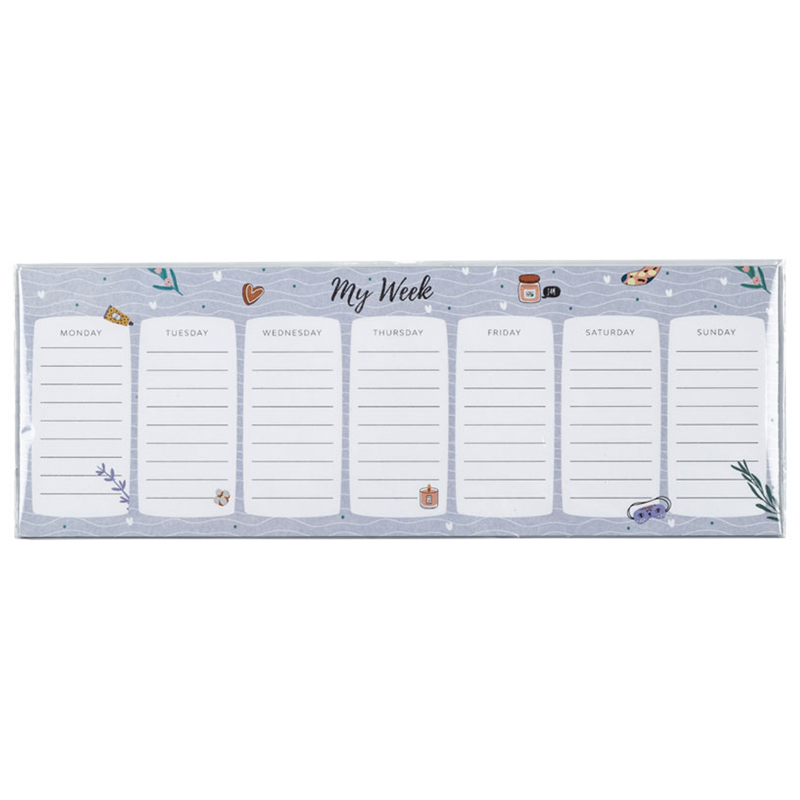 Планер на неделю MESHU. Размер - 297?105 мм. Бумага офсетная 80 г/м2. 30 листов с оригинальным дизайном. Недатированный. На склейке. Индивидуальная упаковка.