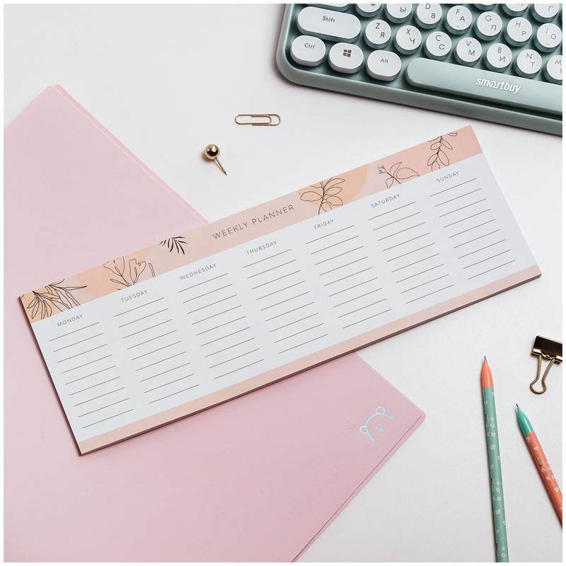 Планер на неделю MESHU. Размер - 297?105 мм. Бумага офсетная 80 г/м2. 30 листов с оригинальным дизайном. Недатированный. На склейке. Индивидуальная упаковка.