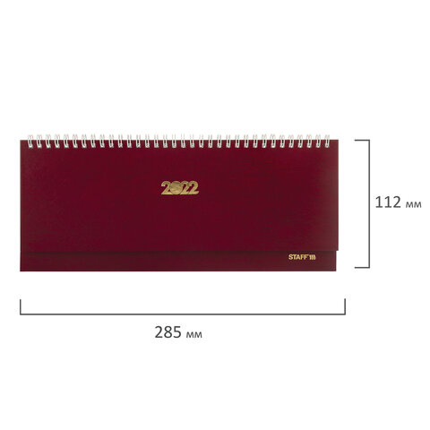 Планинг датированный 2022 (285х112 мм), STAFF, гребень, бумвинил, 60 л., бордовый, 113350