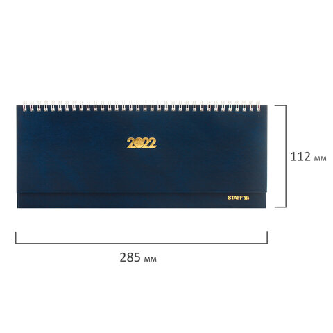 Планинг датированный 2022 (285х112 мм), STAFF, гребень, бумвинил, 60 л., синий, 113349