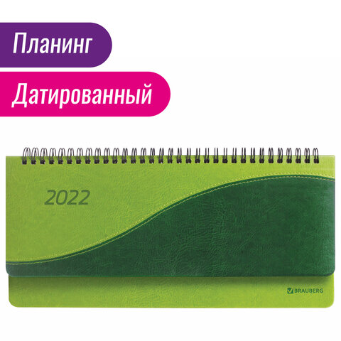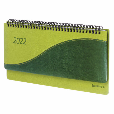 Планинг датированный 2022 305х140 мм BRAUBERG 'Bond', под кожу, зеленый/салатовый, 112713