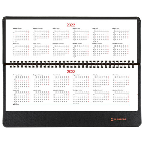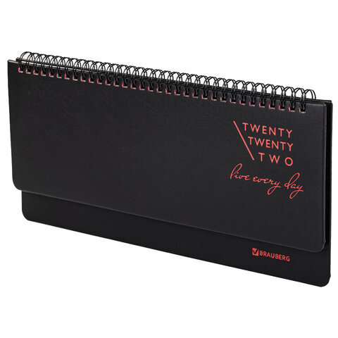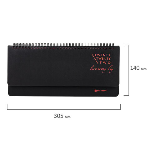 Планинг датированный 2022 305х140 мм BRAUBERG 'Chameleon', под кожу, черный/красный, 112725