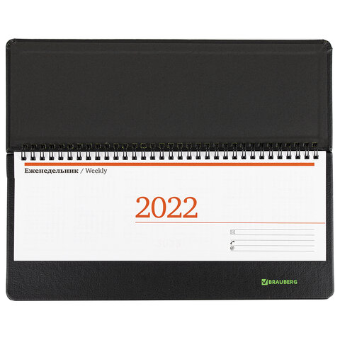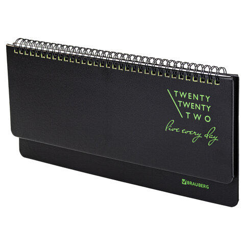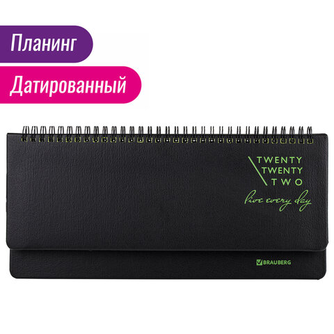 Планинг датированный 2022 305х140 мм BRAUBERG 'Chameleon', под кожу, черный/зеленый, 112726